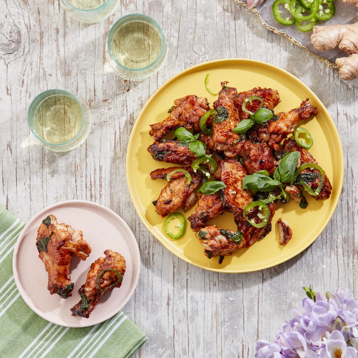 Increase heat to high. Add chicken wings or thighs. Sear for 3–5 minutes, then pour in soy mixture. Bring to a boil, then return garlic and ginger to pot. Cover and bring heat to medium low. Simmer until chicken is cooked and sauce is sticky, about 10 minutes for thighs or up to 15 for wings.