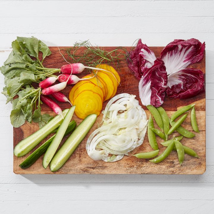 Now that you’ve picked out your dips, lets find a few fresh vegetables for scooping them up. Sliced cucumbers and celery have a coolness that works well with creamy items like yogurt or labneh. For more savory spreads like baba ghanoush or olive tapenade, we like the sturdy crispness of carrots or cauliflower. Other options include radishes, fennel, grape tomatoes, radicchio, sliced beets, snap peas, bell peppers, and gem lettuce leaves—if you can eat it raw, it’s fair game!