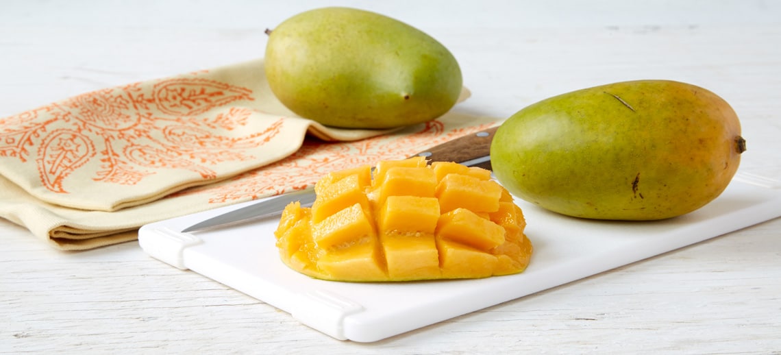 Color is not the best indicator of ripeness. If your fruit is green, that doesn’t necessarily mean that it’s not good to eat. Instead, give your mango a gentle squeeze. It should be tender and yield slightly, and neither mushy nor firm.