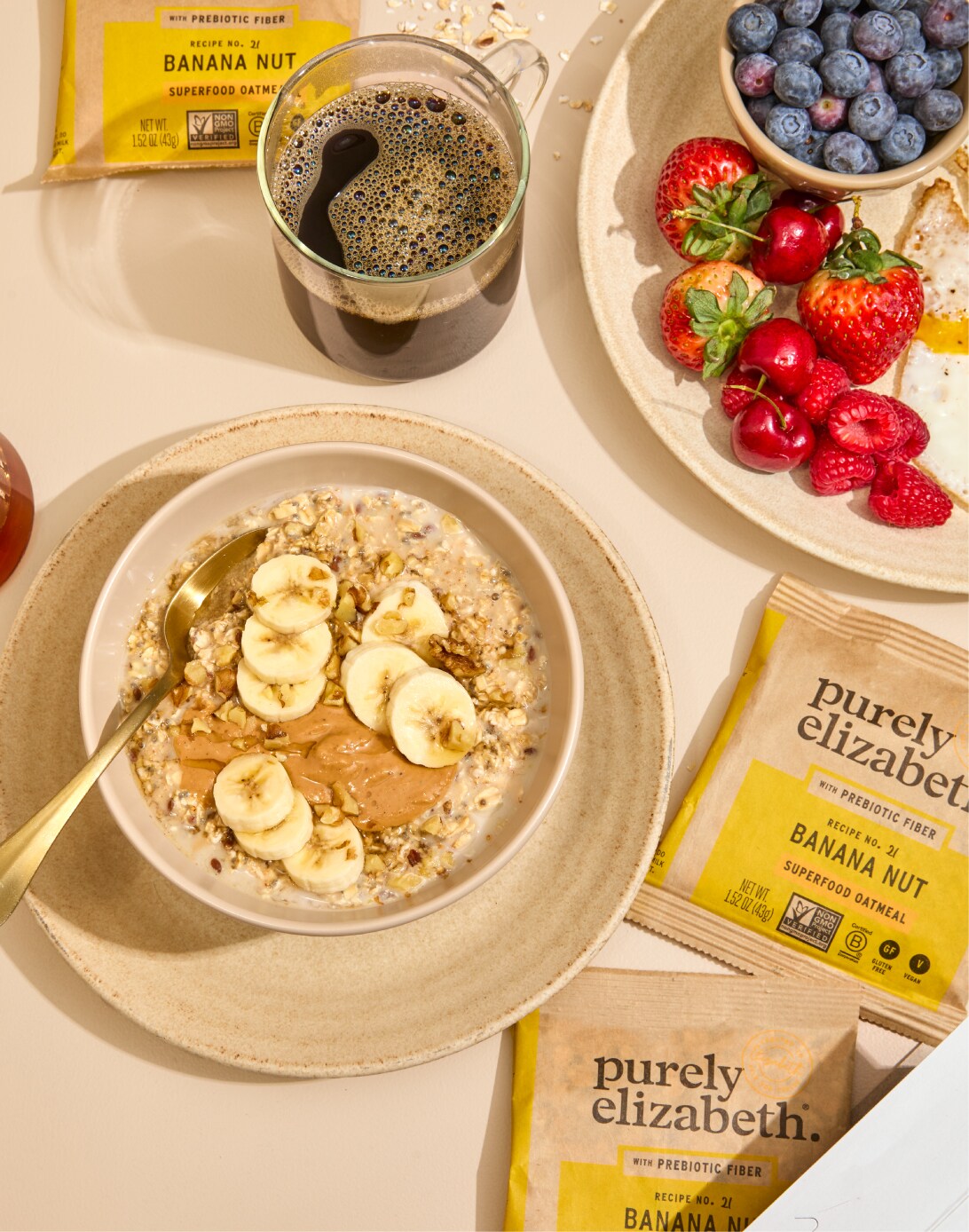 View allStart your mornings with Purely Elizabeth's Elevated Oatmeal. Crafted with organic oats and packed with prebiotic fiber, it's a deliciously wholesome way to fuel your fall days. An excellent source of fiber per serving. Explore all our oatmeal flavors along with our granola.