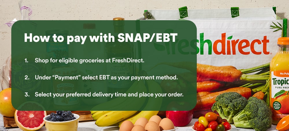 FreshDirect is pleased to offer SNAP/EBT payment as part of a phased rollout, with expansion to additional areas coming soon. Use your benefits to purchase SNAP-eligible groceries. Because everyone deserves access to fresh, high-quality food.