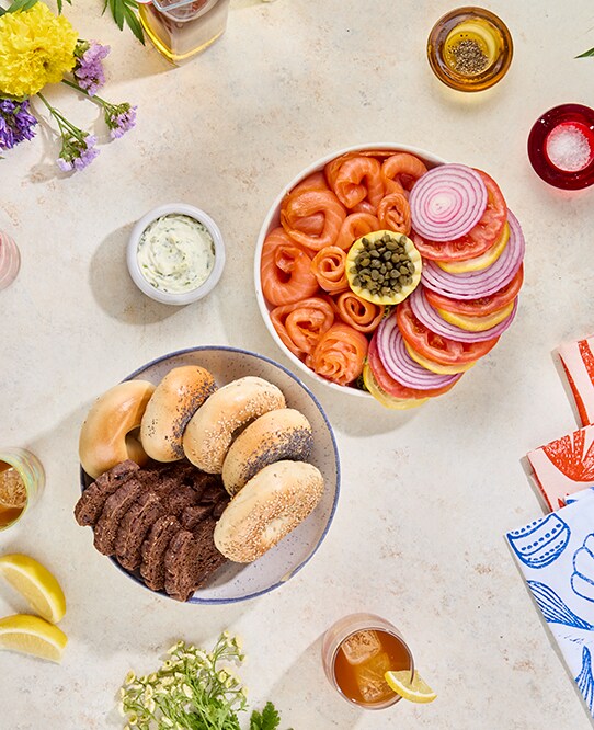 View allA chopped bagel brings the genius of a chopped sandwich to brunch. To make one, gather enough cream cheese, smoked salmon, sliced cucumber, bacon, sliced red onion, capers, dill fronds, and black pepper to generously top your bagels. Spread the cream cheese onto a cutting board, then layer the other ingredients on top with a drizzle of olive oil. Coarsely chop everything while scraping to mix it all together. Spread onto your bagels and enjoy!