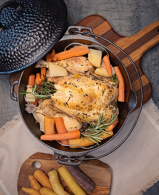 Mike Charles of LaBelle Patrimoine is a sixth-generation poultry farmer, but his exceptional chicken is the result of his own journey to raise the most beautiful birds. After discovering LaBelle Rouge chicken in France, he brought slow-growing, athletic, heritage poultry to the pastures of Lancaster, PA. Their meat is considered a culinary marvel, with a uniquely rich and tender character. Such high quality is possible because of Charles's commitment to the highest standards of animal welfare and to regenerative farming practices.