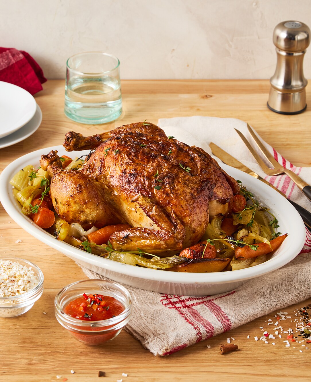 Go for the whole bird! It's super cost-efficient compared to buying by the cut. Here's our simple method for roasting one: Preheat oven to 425 F, then place a 3-4 lb chicken on a foil-lined baking sheet, breast side up. Mash together some soft butter, citrus zest, chopped herbs, salt, and pepper, then generously rub it all over the outside, inside the cavity, and under the skin. Place some lemon slices and whole herbs inside the cavity too. Roast until thigh reaches an internal temperature of 165 F, about 75 minutes. The skin should be deep golden, the wings loose, and the juices clear.